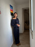 Tuta set pantalone modello palazzo con elastico e lacci in vita felpa super over con elastico all’addome scollo a V
