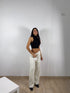 Pantalone in lanetta nero. Porta l’elastico in vita con lacci panna regolabili. Veste fino ad una taglia L/XL