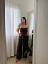 Top in camoscio marrone. Con lacci regolabili sul davanti e cerniera posteriore.Â