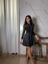 Vestito pizzo e ecopelle con zip centrale manica lunga tasche finte